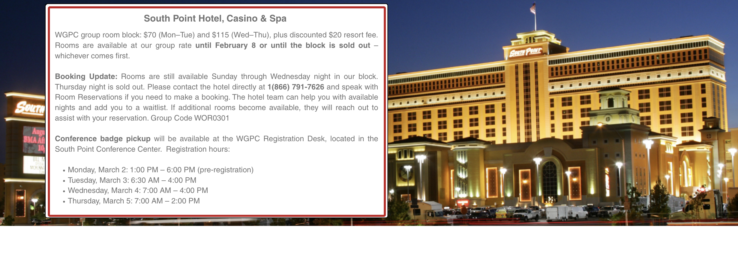 Please note, the WGPC is a private, casino industry event and is not open to the public.